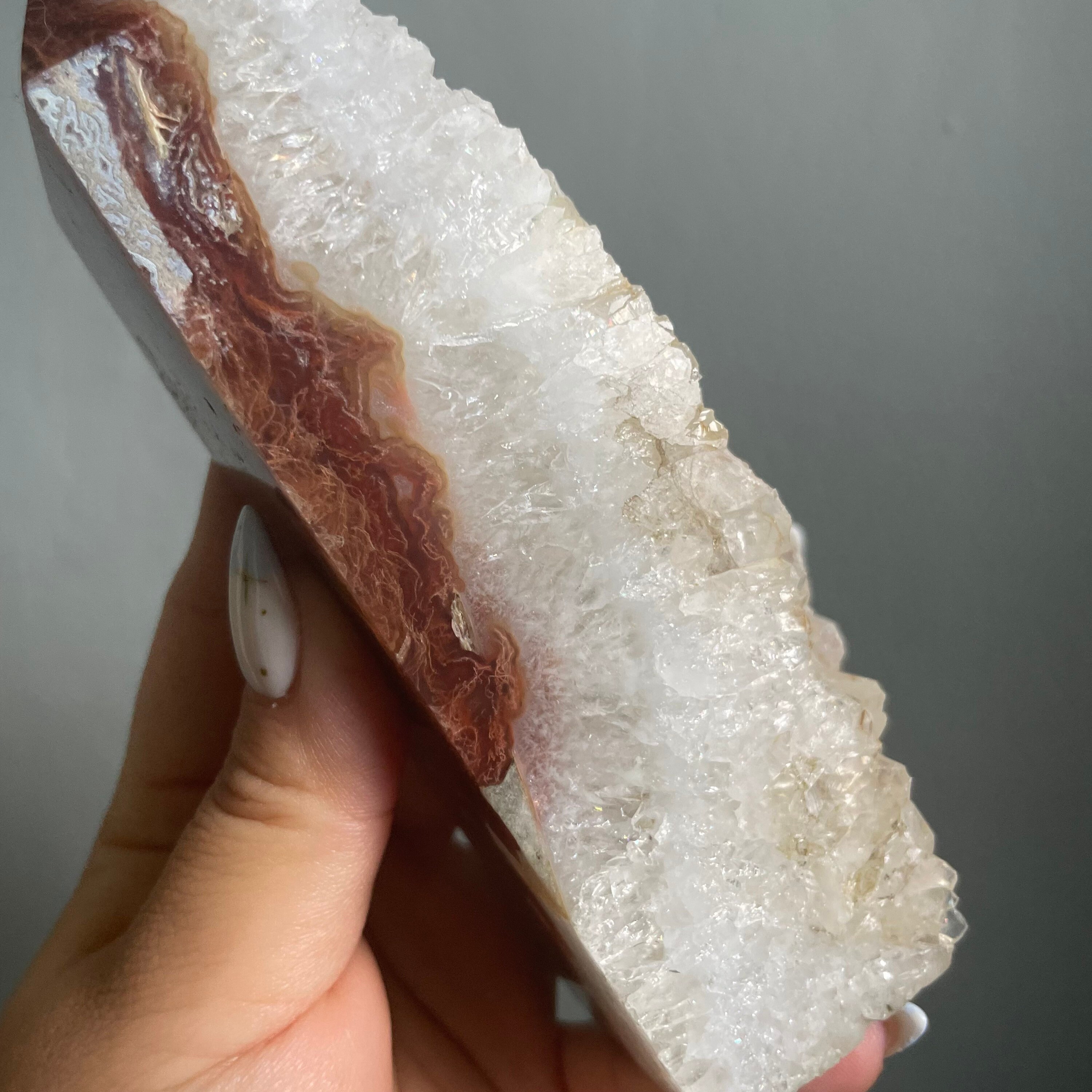 Druzy moss agate tower slab| Rare red moss agate with quartz Crystal home decor