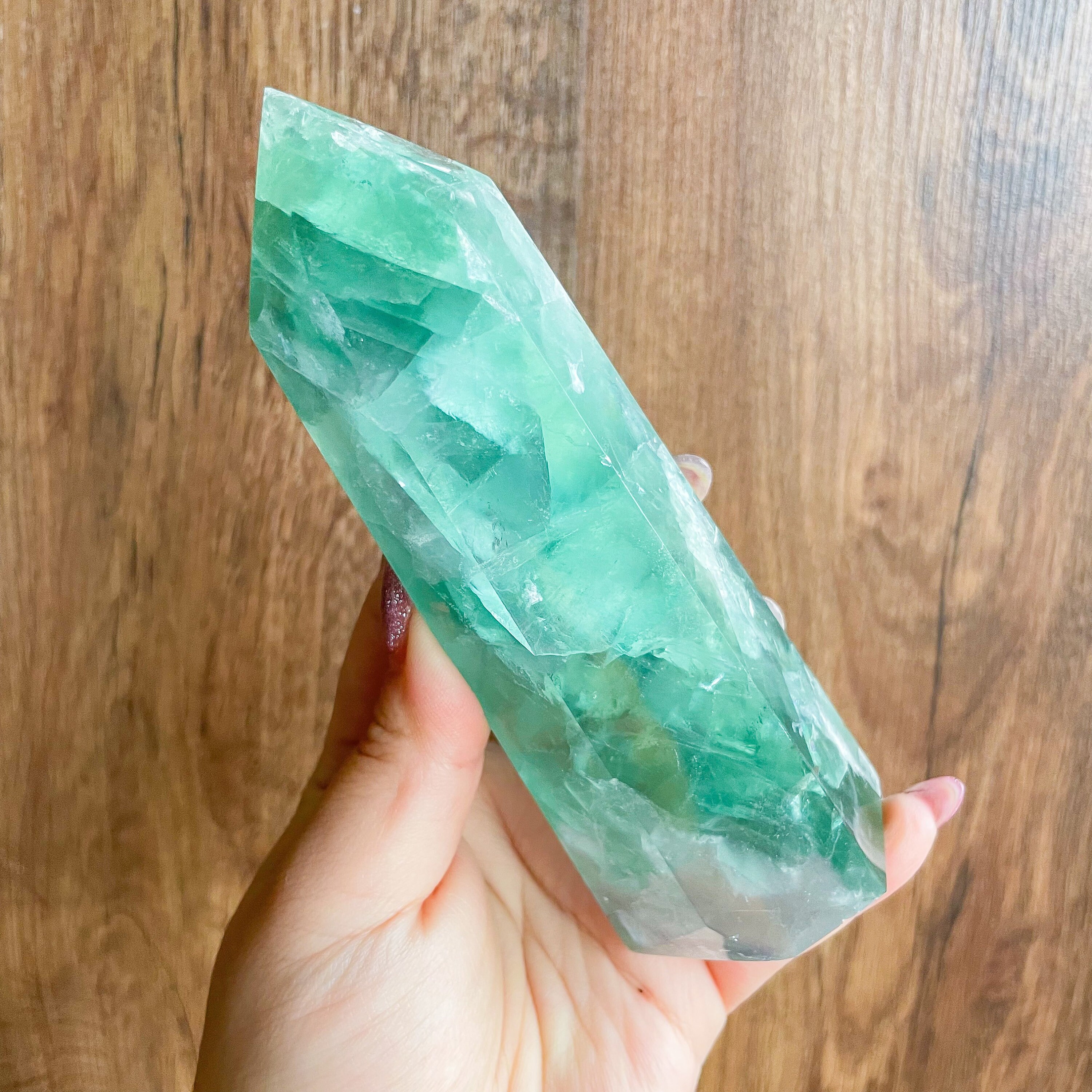 *Fluorite is a highly fragile crystal, this means it may sometimes exhibit what appears to be chips/scratches during the polishing process. Please note these are minute in detail and part of our fluorite specimen. This is especially common in larger pieces where flaws are polished to the surface. Where possbile we will show this in the photos.