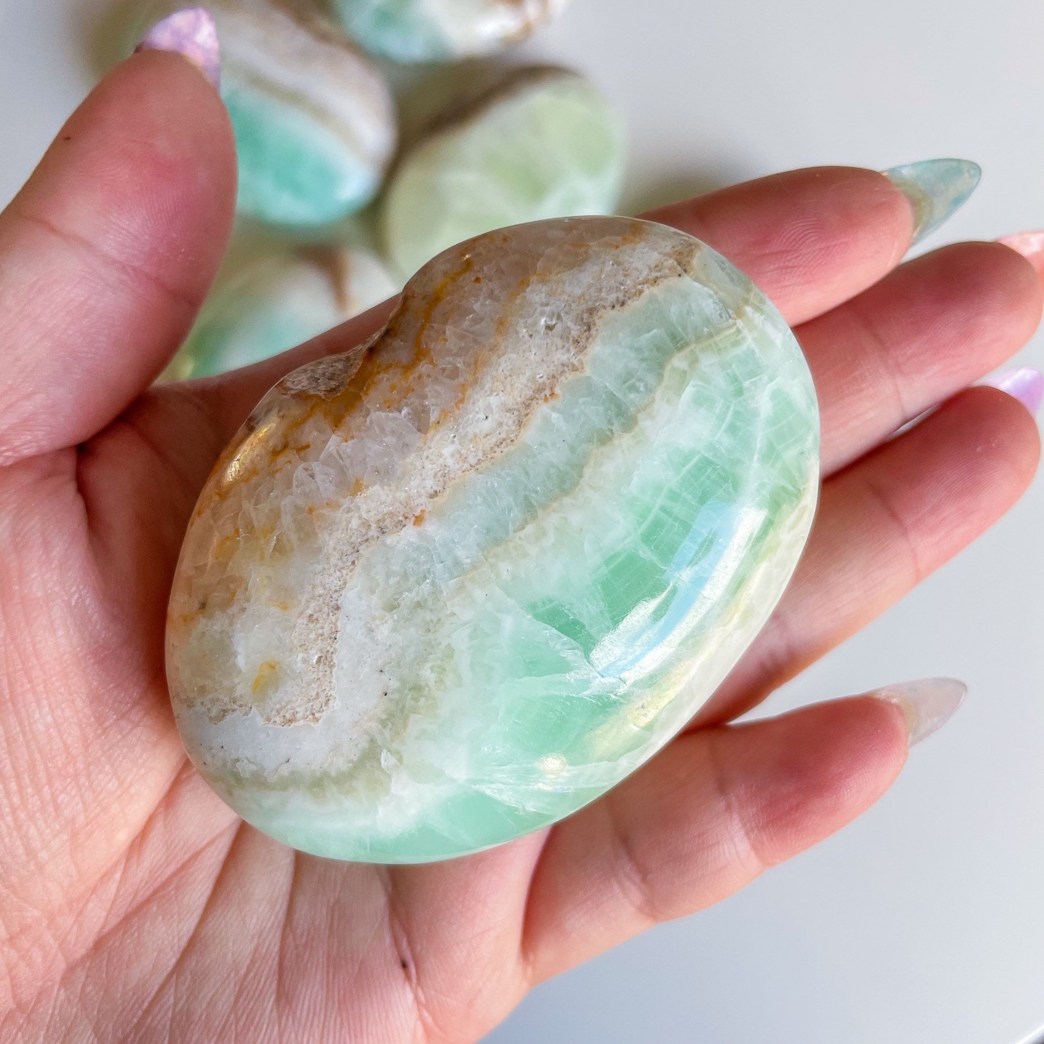 green calcite crystal palmstone healing crystal self-love journey home decoration