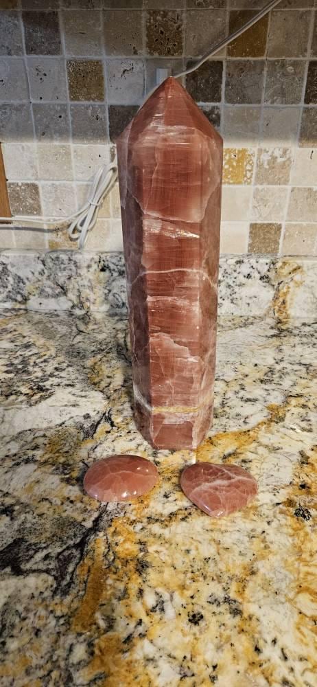 Premium rose calcite crystal tower | rose calcite XL crystal tower ornament healing crystal healing journey home decoration